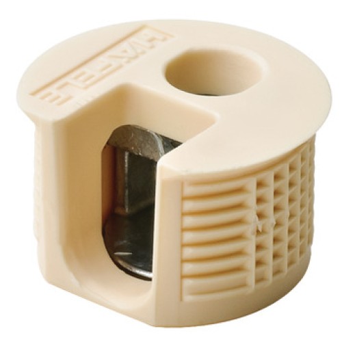 Connector Housing Plastic without Ridge Flush-Fitting Rafix-20 without plug without ridge with tightening element For wood thickness from 19 mm dim. A 9.5 mm drilling depth X 14.2 +0.2 beige