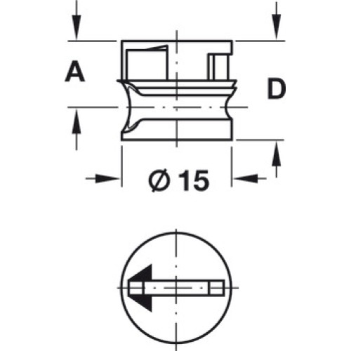 Connector Housing without Rim Polycarbonate Minifix 15 For wood thickness from 15 mm dim. A 7.5 mm drilling depth x 12.0 +0.2 mm White