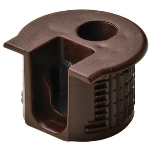 Connector Housing Plastic Rafix-20 With and without dowel with and without ridge with tightening element For wood thickness 19 mm dim. A: 9.5 mm drilling depth X 14.2 +0.2 brown