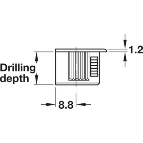Connector Housing Zinc Alloy Rafix-20 With tightening element For wood thickness from 19 mm dim. A 9.5 mm drilling depth X 14.2 +0.2 nickel plated